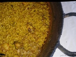 Arroz, calamar, cigalas, langostinos, gambas, mejillones todo peladito.