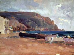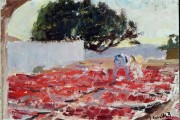 Sorolla inicia en  Jávea  en 1900 sus grandes paisajes marinos y de montaña,Compatibiliza con un oficio artesano tÃpico de la zona.La elaboración de pasa,es recogido en varias de sus telas,lo que proporciona un valor adicional al adquirir un indudable interés etnográfico.